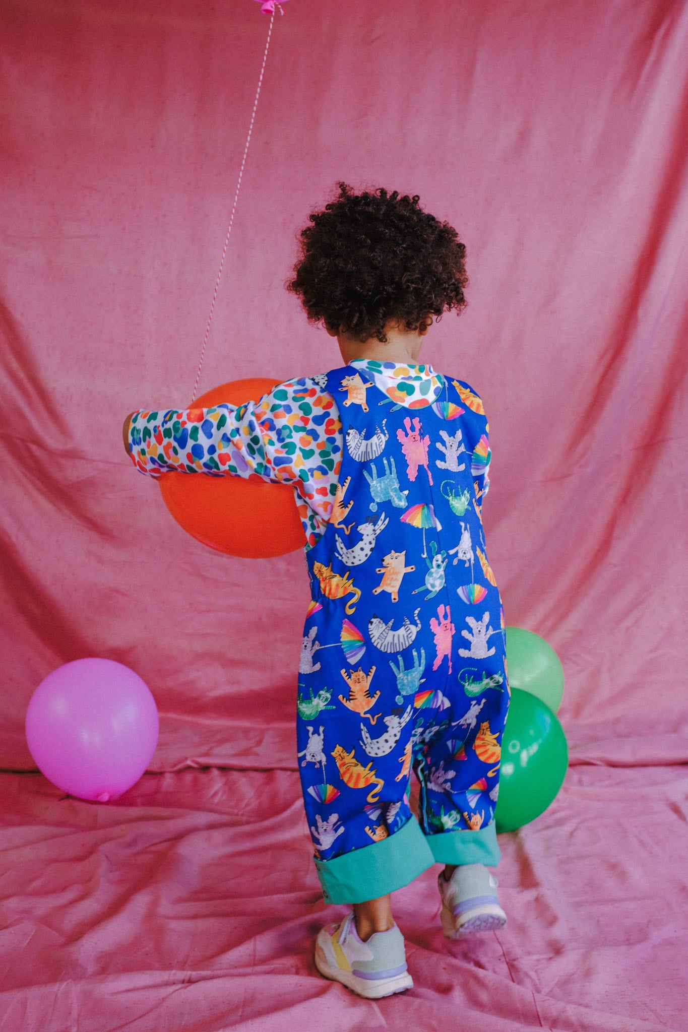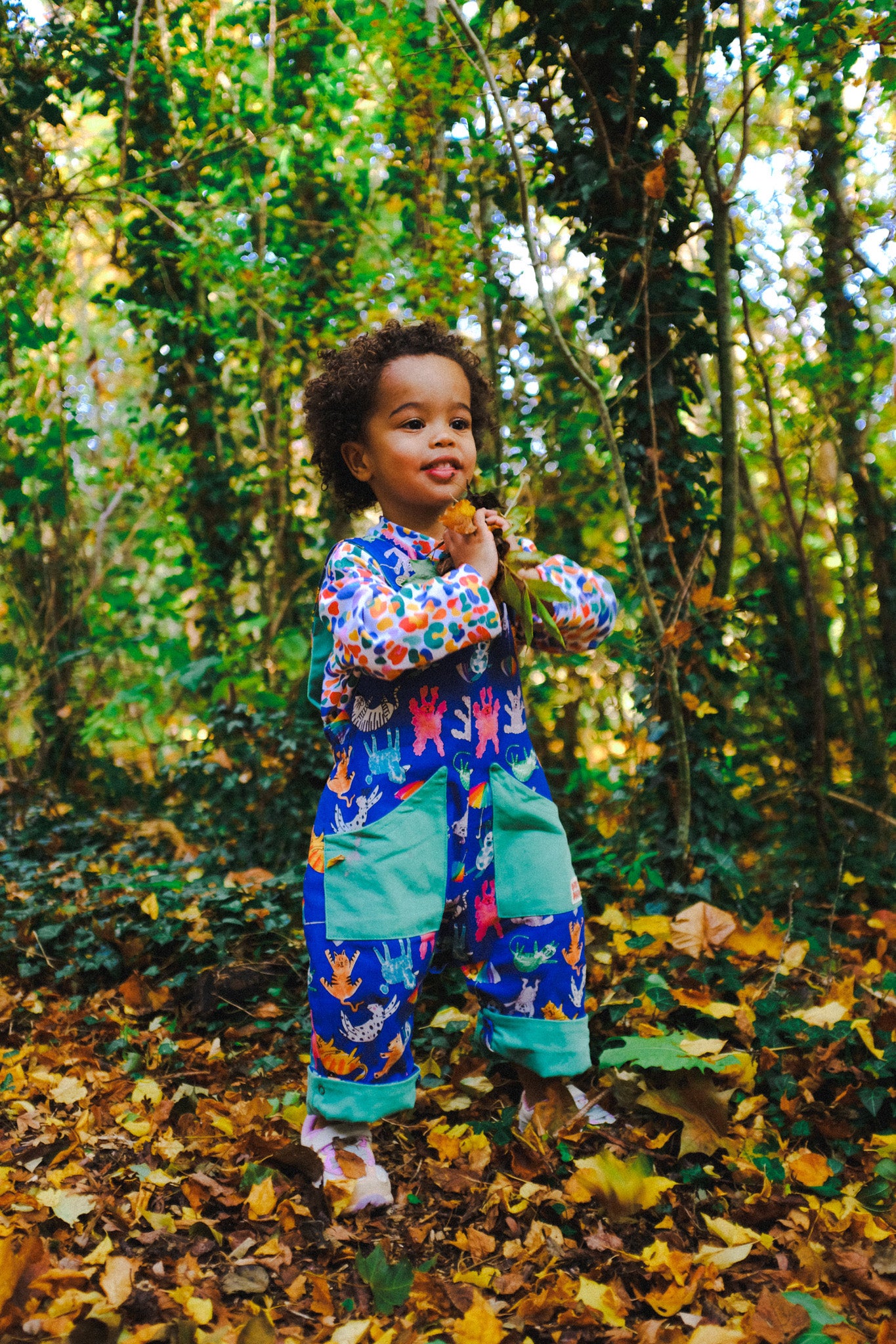 Whatever the weather, our Raining Cats and Dogs Dungarees bring a splash of fun to every day. Made in the UK from premium organic and recycled cotton, these playful dungarees are built for comfort and durability. With adjustable shoulder straps and leg lengths, they’re designed to grow with your child, perfect for endless adventures and all-day play.